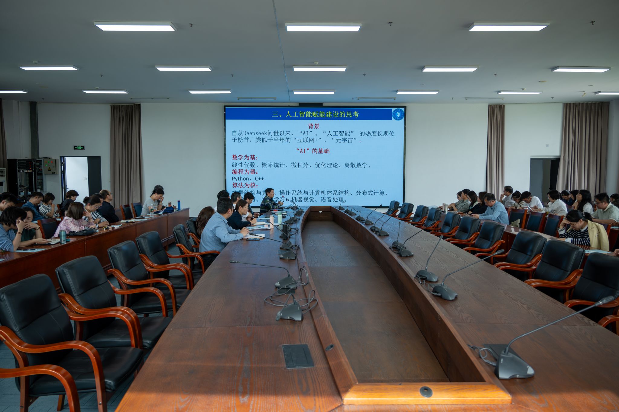 随后,学院各专业代表结合 2025 级人才培养方案制订,围绕课程思政、产教融合、人工智能赋能专业及课程建设等内容展开汇报交流。机械、电气、楼宇、车辆、智能制造等专业代表分别发言,强调深化人工智能与专业课程交叉融合,构建 “1+X+Y” 的人工智能课程体系,旨在提升学生对人工智能的认知与实践能力。