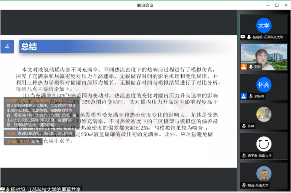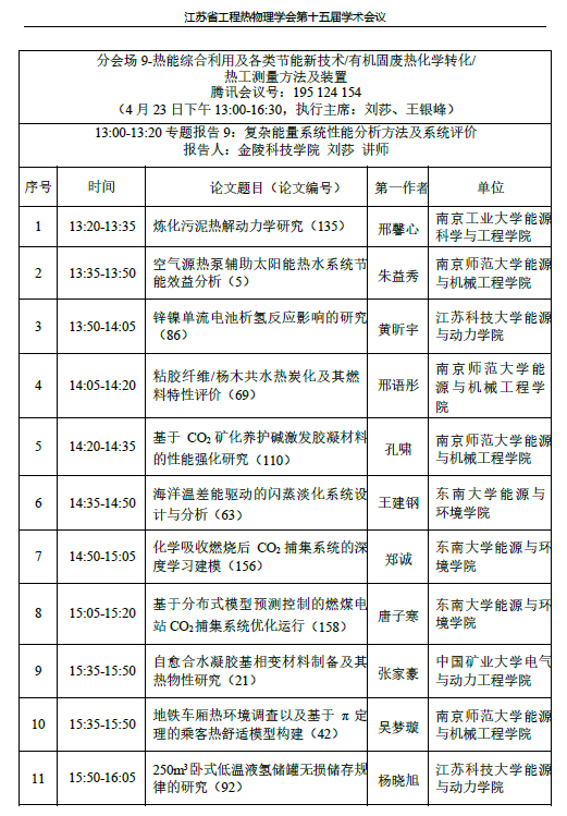 近日,由江苏省工程热物理学会主办的江苏省工程热物理学会第十五届学术会议隆重召开,参会人员云集了省内二十余所高校相关代表,我校第一次作为委员单位参会。大会一共做了3个主题报告,9个会议报告,着重对工程热力学、新能源技术、动力及流体动力机械、流动换热装置、热能综合利用及各类节能新技术、有机固废热化学转化/热工测量方法及装置等九个主要议题进行了学术研讨,绿帽社 刘莎老师作为分会场9(热能综合利用及各类节能新技术/有机固废热化学转化)执行主席,做了题为“复杂能量系统性能分析方法及系统评价”的主题报告。