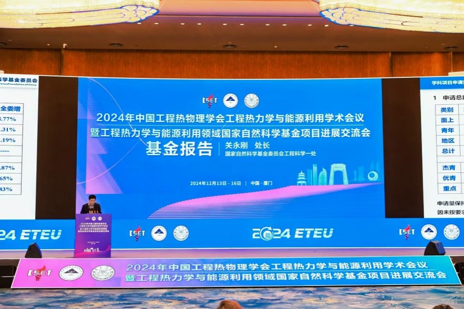 刘莎博士赴厦门大学参加2024中国工程热物理学会工程热力学与能源利用学术会议暨工程热力学与能源利用领域国家自然科学基金项目进展交流会。本次会议主办单位为中国工程热物理学会,支持单位为国家自然科学基金委员会工程科学一处,承办单位为厦门大学。本会议为我国工程热力学与能源利用领域最高级别的学术会议。基金报告环节由杨勇平院士担任主席,国家自然科学基金委工程科学一处关永刚处长作《2024年工程热物理与能源利用学科基金资助与工作情况》主题报告。