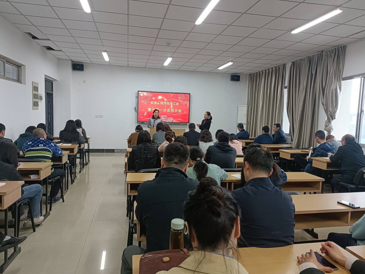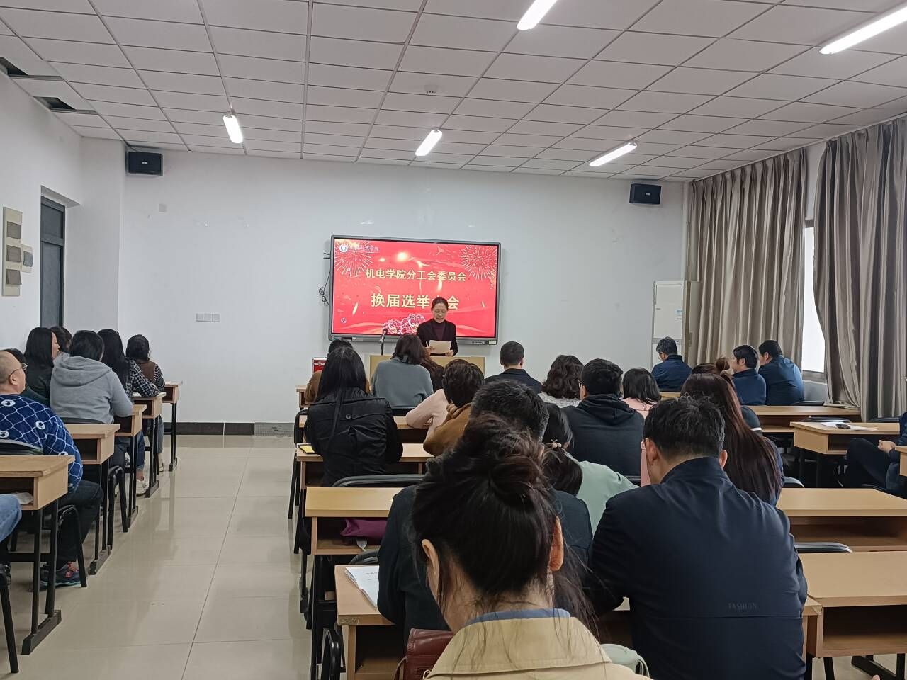 随即,七位当选委员召开了机电学院第七届一次委员会全体会议,会议决定推选张玉同志担任机电学院分工会主席,兼任民主管理委员;凌秀军同志担任机电学院分工会组织宣传委员;徐雷同志担任机电学院分工会财务委员;张蛟同志担任机电学院分工会生活福利委员;林坡同志担任机电学院分工会文体委员;姜劲同志担任机电学院分工会青年委员;杭阿芳同志担任机电学院分工会女工委员。