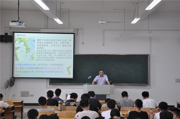 在3202教室开展了一场关于朝鲜半岛与东亚局势未来走向的形势与政策讲座。讲座由马克思主义学院吴锦旗老师主讲。
