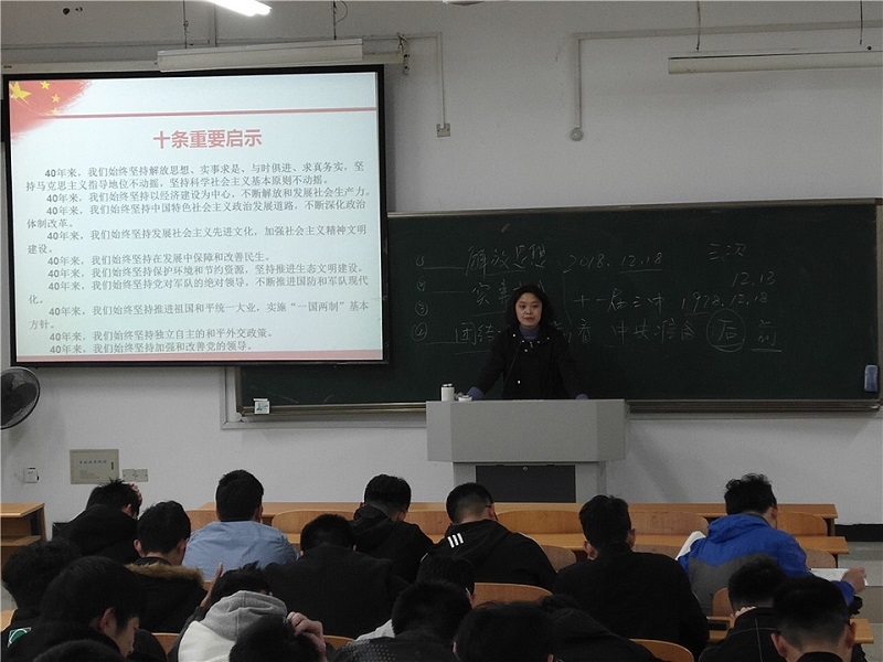 于3月27日在教学楼3202开展了形势与政策讲座,本次讲座由胡娟老师主讲,18建筑电气与智能化(1)、(2)班同学参加了讲座。