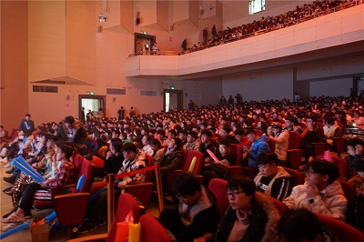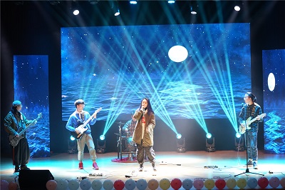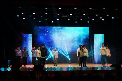 晚会现场座无虚席,场面火爆。晚会开始前,摇滚公社乐队演奏凭借激昂的音乐、优美的旋律、整齐划一的鼓点瞬间点燃了现场的气氛,观众们的掌声、叫好声此起彼伏。一首《可惜不是你》配合着手语操拉开了晚会的序幕,小品《阴差阳错》向我们展现了偶遇带来的快乐,结合多种现代元素,以幽默搞笑的风格赢得观众的阵阵掌声。歌曲《飞》将民族特色与流行元素揉入其中,为观众们带来了美妙的乐章。舞蹈《欢乐的跳吧》让大家领略了青春的精彩。歌伴舞《陪着你走》伴着悦人的音乐缓缓而来,跃动的舞姿,流彩的灯光,让人不自觉的沉浸其中。轻松幽默的小品表演《试镜》、唯美舞蹈《STEP UP》、吉他弹唱《好日子》、歌曲演唱《梨花又开放》、《野子》、《LOSE YOURSELF》、《COUNTING STARS》及歌曲串烧等婉转动听,击人心灵,令人神往,给观众们带来一场视听盛宴。整场晚会经典与流行相结合,传统与时尚相碰撞,精彩纷呈,高潮迭起,尽显青春的火热和激情。