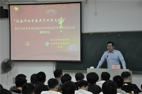 讲座以“五四精神与中国道路”为题,围绕习近平在纪念五四运动100周年大会上的讲话精神进行了生动学习。常老师首先介绍了五四运动的过程、历史及其对当时中国的重大意义。让我们重温100年前那段激情燃烧的岁月,激发复兴力量。接着,结合树立远大理想、热爱伟大祖国、担当时代责任、勇于砥砺奋斗、练就过硬本领五个方面,对从“五四运动”以来的100年新中国、新时代中国青年运动的主题、方向和使命与同学们进行了深入交流。最后,和大家共同学习了习近平在纪念五四运动100周年大会上的讲话精神。