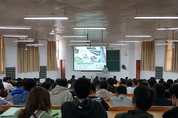 报告会上,胡启洲教授从高速铁路的相关术语、高速铁路的设计方法、高速列车的设计理念、高速站点的设计理念五个方面做了详细阐述。他以日本、法国、德国及我国为例,从“点(高速列车、站点)、线、面”的角度深入剖析了高铁的仿生学原理设计理念,通过对比每一代高铁的显著特征讲述了高铁的发展进程。他着重介绍了我国高铁的发展史,介绍了我国高铁的发展技术、运行现状等,指出了我国在高铁方面的建树和不足之处。他表示,设计源于生活,鼓励同学们从生活中寻找灵感。