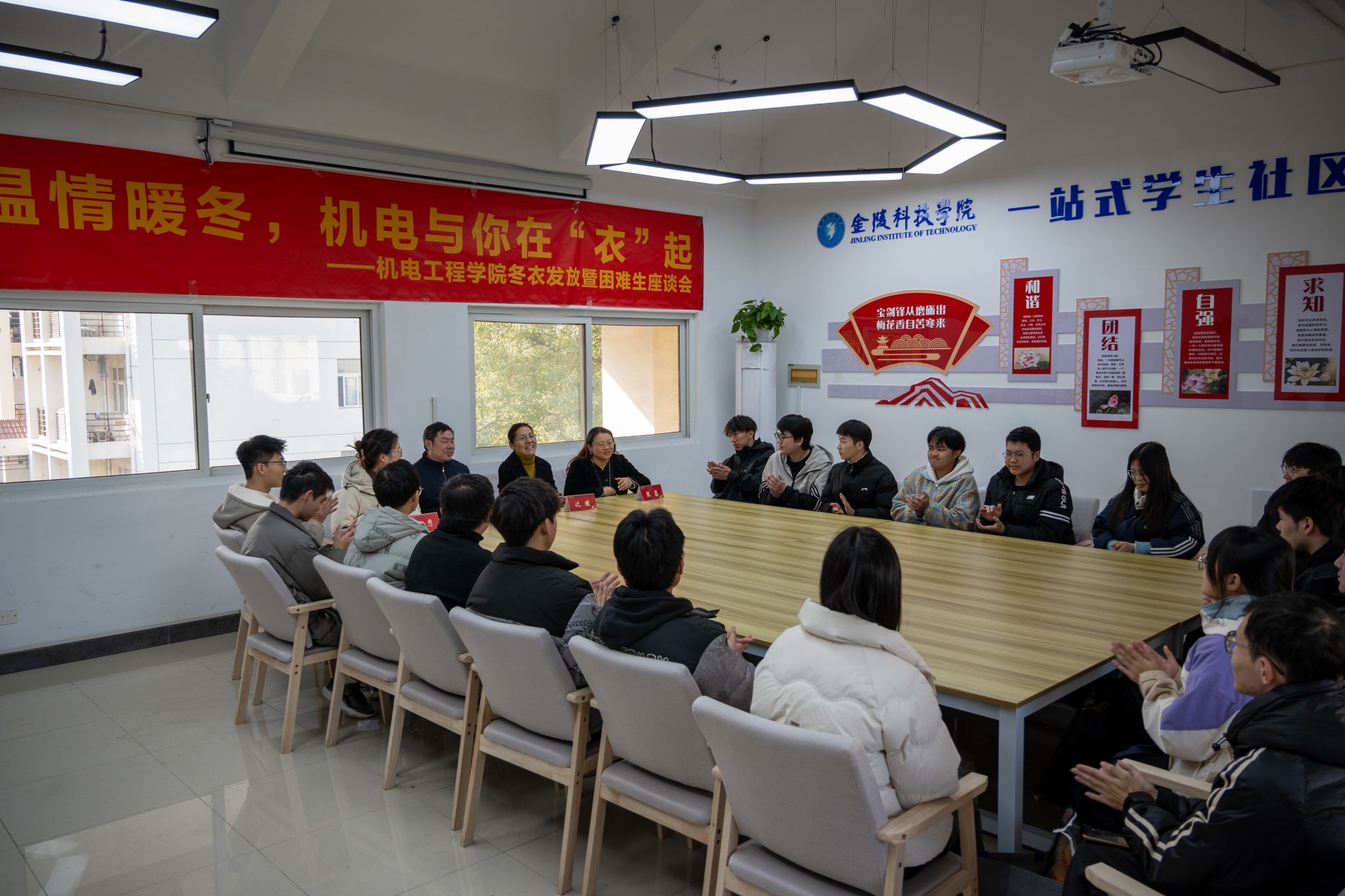 在南01一站式学生社区举行了2024年爱心冬衣发放活动暨家庭经济困难学生座谈会。学院党委书记沈瑾、副书记张蓉、副院长于继明出席本次活动,杨秀老师主持会议,全体受助学生参加。