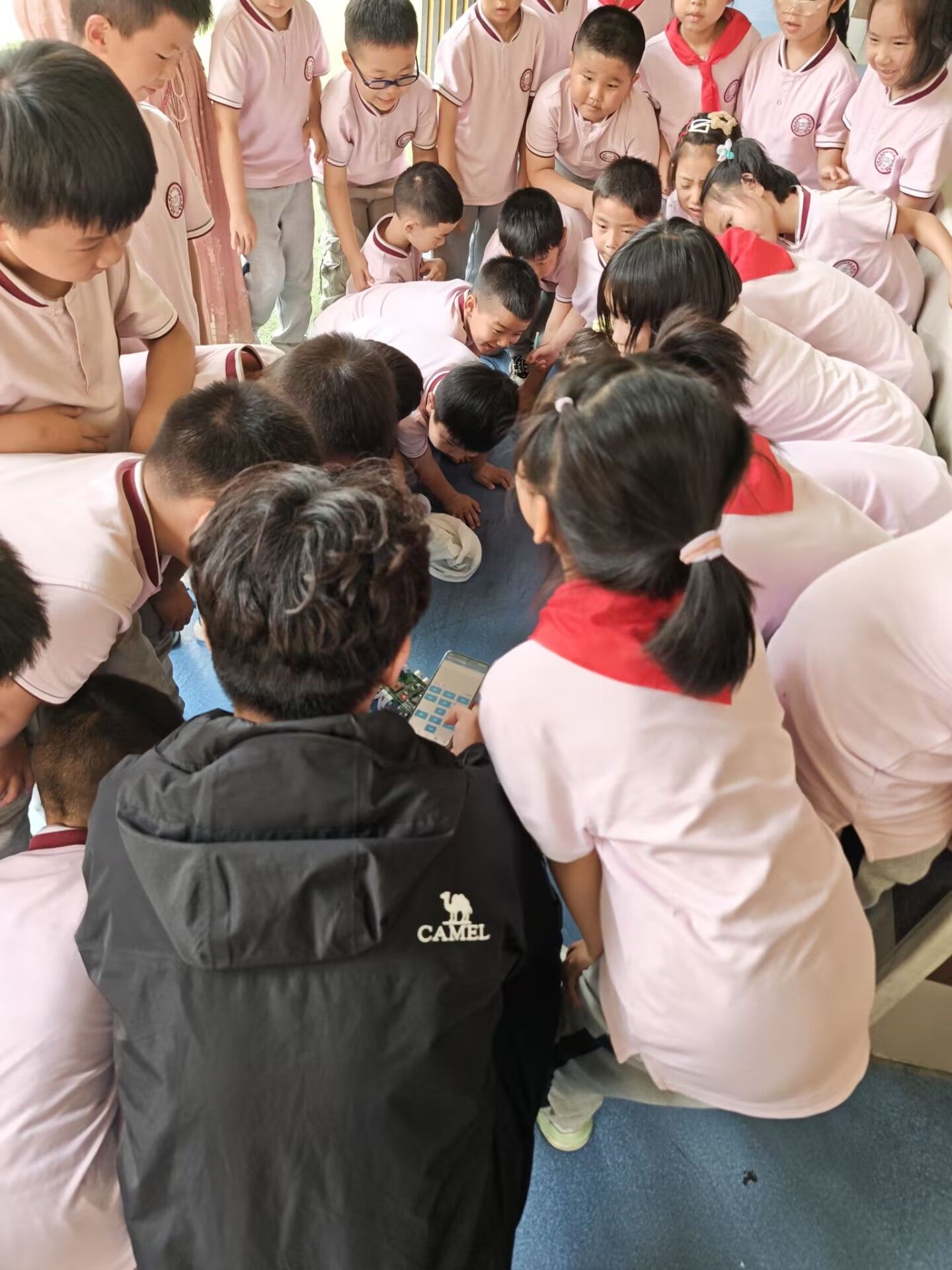 何昊作为学生志愿者代表,他表示,通过分享机电科创团队的奋斗历程和成功经验,鼓励小朋友们树立科学梦想,培养创新意识和实践能力。同学们专注的眼神,都让他感受到活动的意义和价值。他将带领机电科创团队继续前行,为科学的普及和推广而努力。