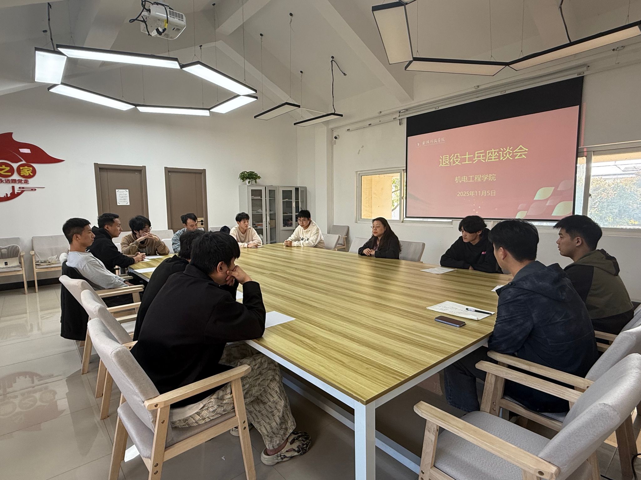 传承军旅本色,赋能青春成长。本次座谈会的召开,不仅搭建了学院与退伍大学生士兵之间的沟通桥梁,也进一步增强了退伍大学生士兵的归属感与认同感。学院将持续关注并全力支持退役大学生士兵的成长与发展,积极创新工作模式,优化服务保障,助力学生完成角色转变。为他们成长成才创造更优质的环境,鼓励他们将军旅精神融入校园生活与未来发展,着力打造机电学院征兵工作亮点品牌。