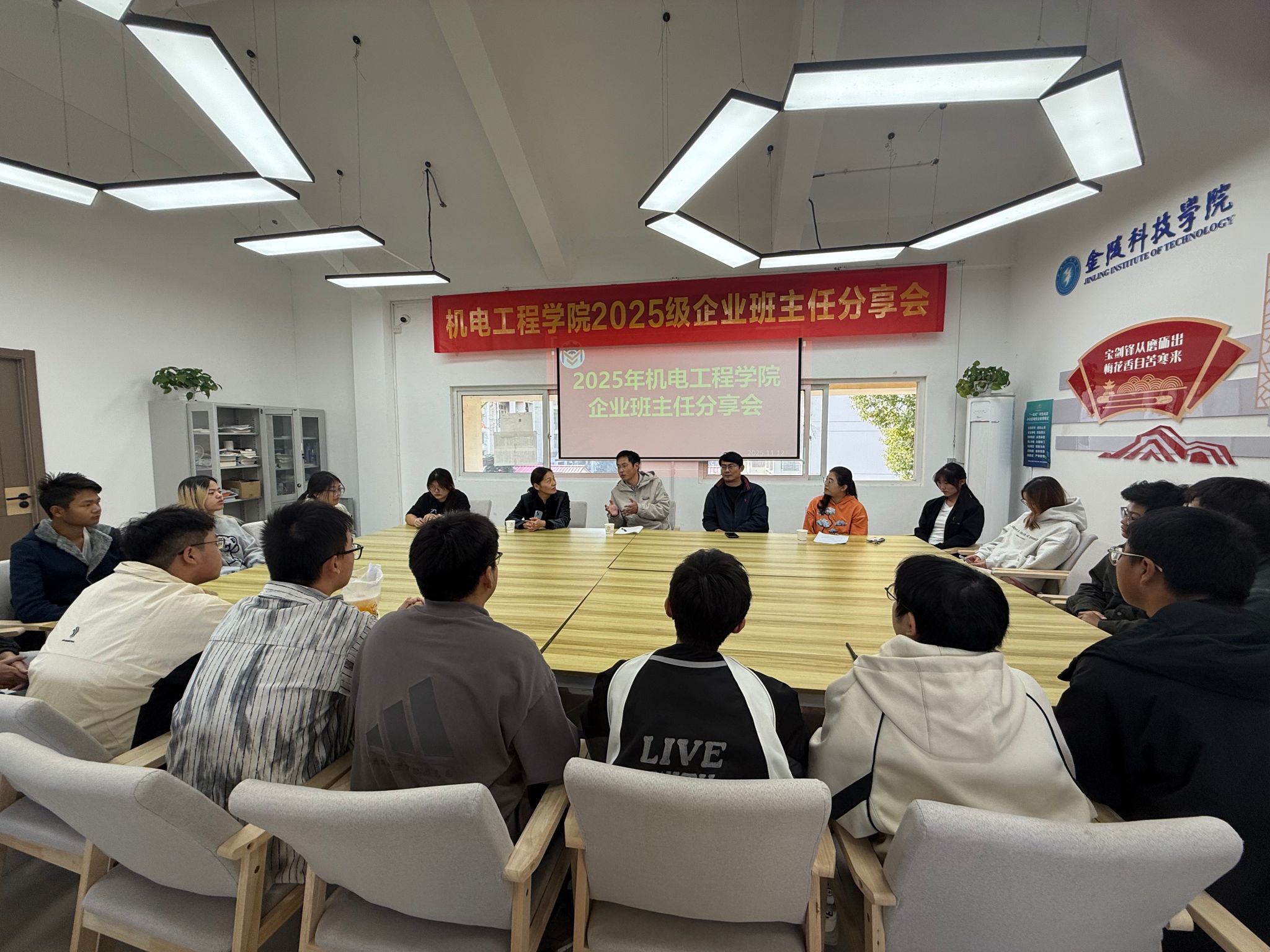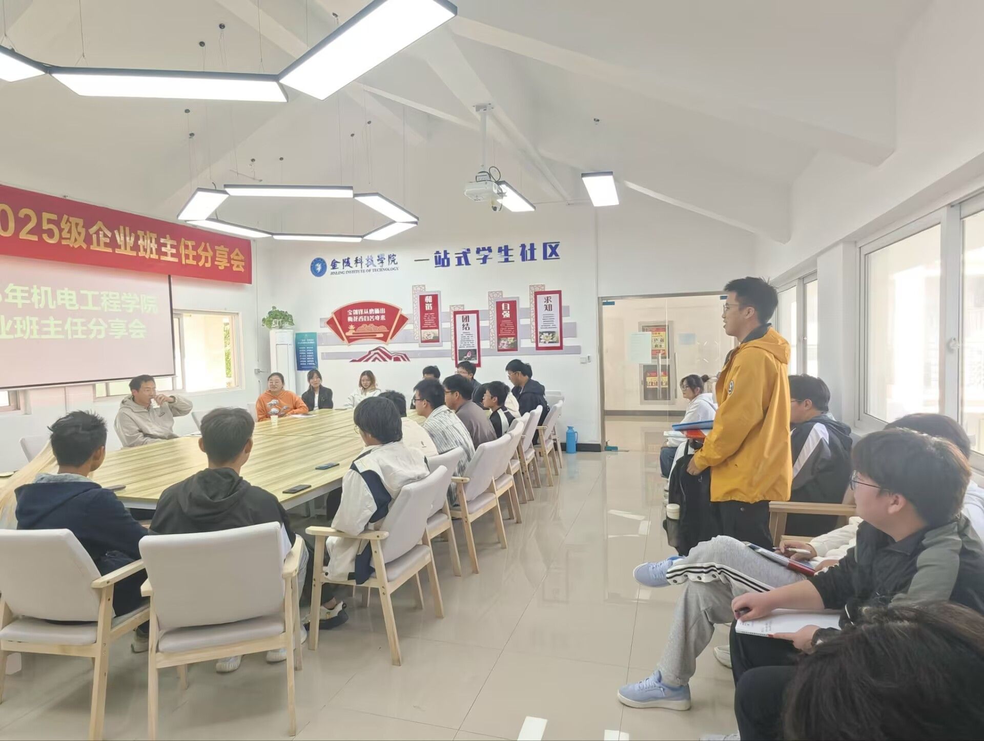 在南01学生一站式社区举办2025级企业班主任分享会。活动邀请2025级电气工程及其自动化班企业班主任、2018届优秀校友余冠廷返校分享。院党委书记沈瑾、院长周金宇、学工办副主任李梅、辅导员王东红、辅导员王佳、2025级电气工程及其自动化(2)班全体新生共同参会。