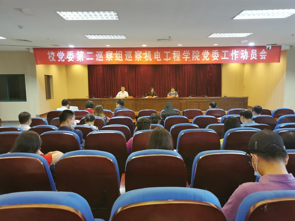 党委工作动员会在图书馆第二报告厅召开。校党委第二巡察组全体成员、机电学院全体教职工、部分学生党员代表参加了会议,会议由绿帽社