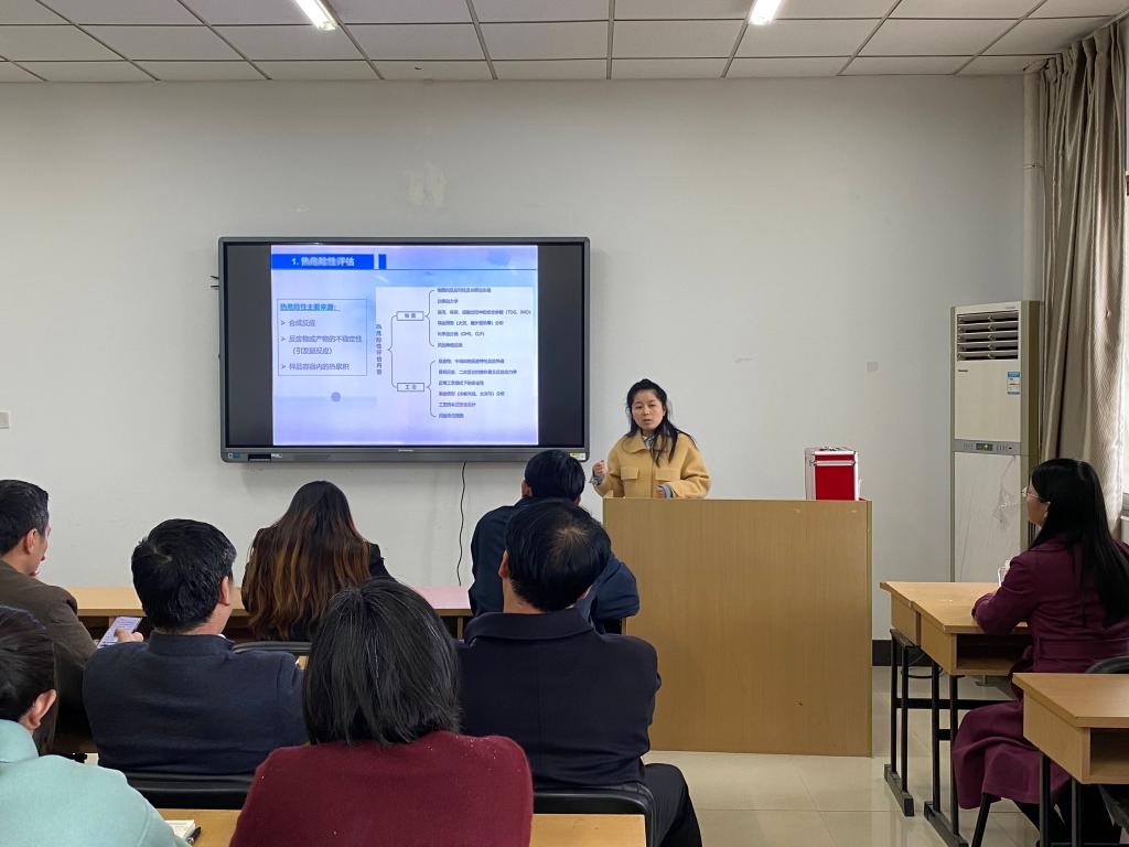 近年来,生产与储存过程中化学品事故频发,并造成严重的人员伤亡和财产损失,准确评估危化品的热危险性对提高生产、储存等过程中的安全性具有重要的意义。王顺尧博士分析了热危险性评估过程中的共性关键技术,难点主要在于如何合理地将小规模实验结果数据精确映射到工业规模中,而基于动力学模拟方法的评估可以很好地解决这个问题。无论是对于差示扫描量热,还是绝热量热和反应量热,均可通过实验数据建立化学品或工艺的反应动力学模型,进而结合反应器模型,准确评估其工业规模下的热危险性,预测其热爆炸临界条件以及自加速分解温度、绝热诱导期等安全参数,进行本质安全设计以及紧急压力泄放系统设计。她进一步分析了典型案例,依据这些应用实践得出了一些有效结论。讲座结束后,王顺尧博士与部分老师围绕讲座内容进行了交流和讨论。