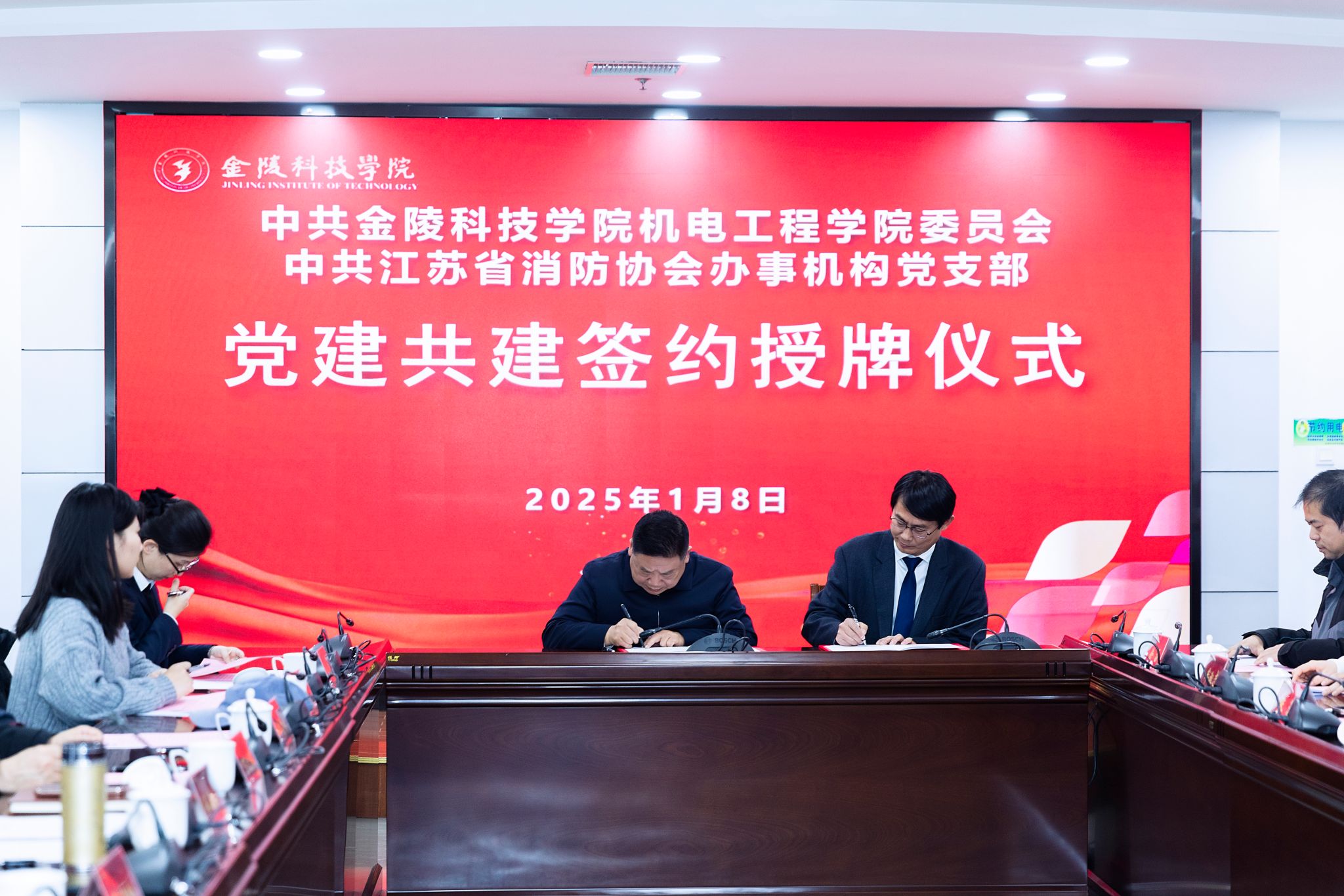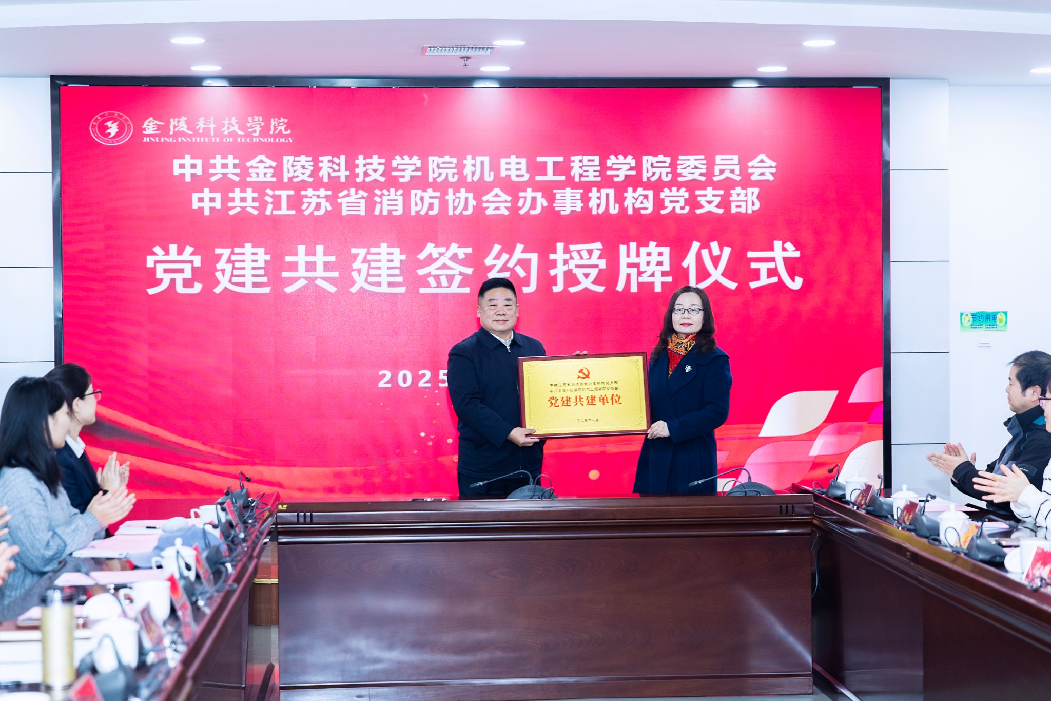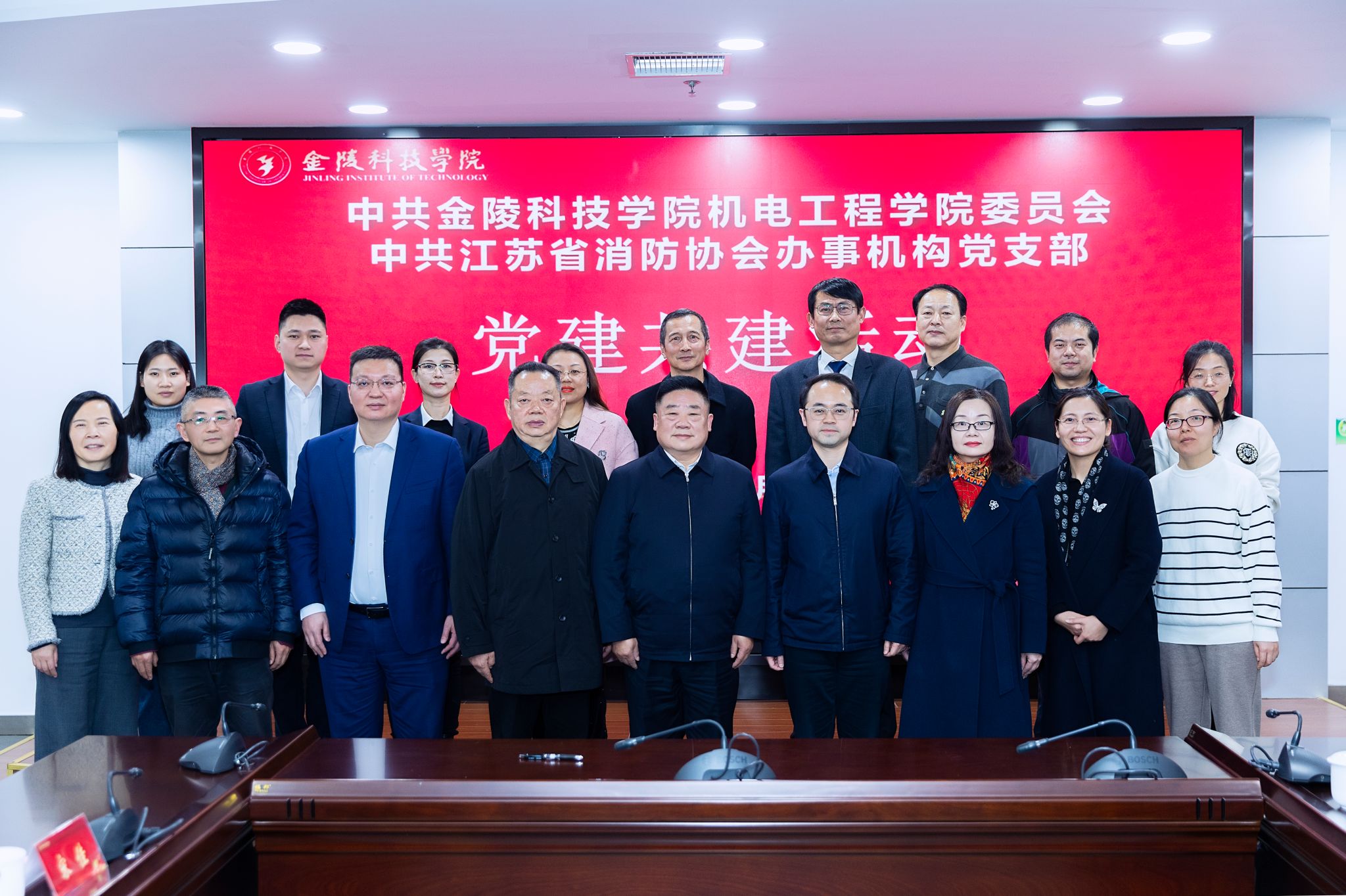 与江苏省消防协会在江宁校区图书馆第一报告厅开展以“党建引领促发展,结对共建聚合力”为主题的党建共建活动。江苏省消防协会党建工作领导小组组长、协会办事机构党支部书记、会长蒋正林以及协会支部专家成员受邀参加,我校党委副书记单晓峰、党委组织部部长张远凤、绿帽社